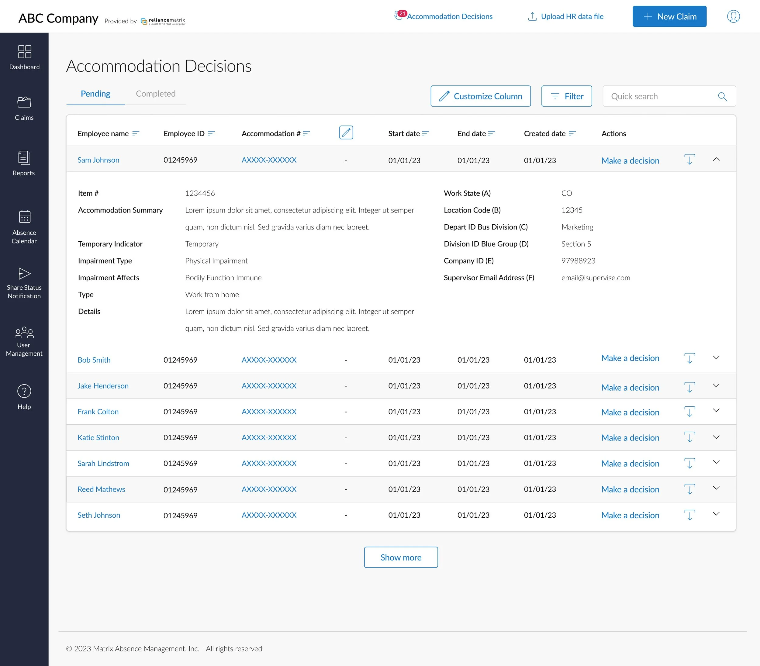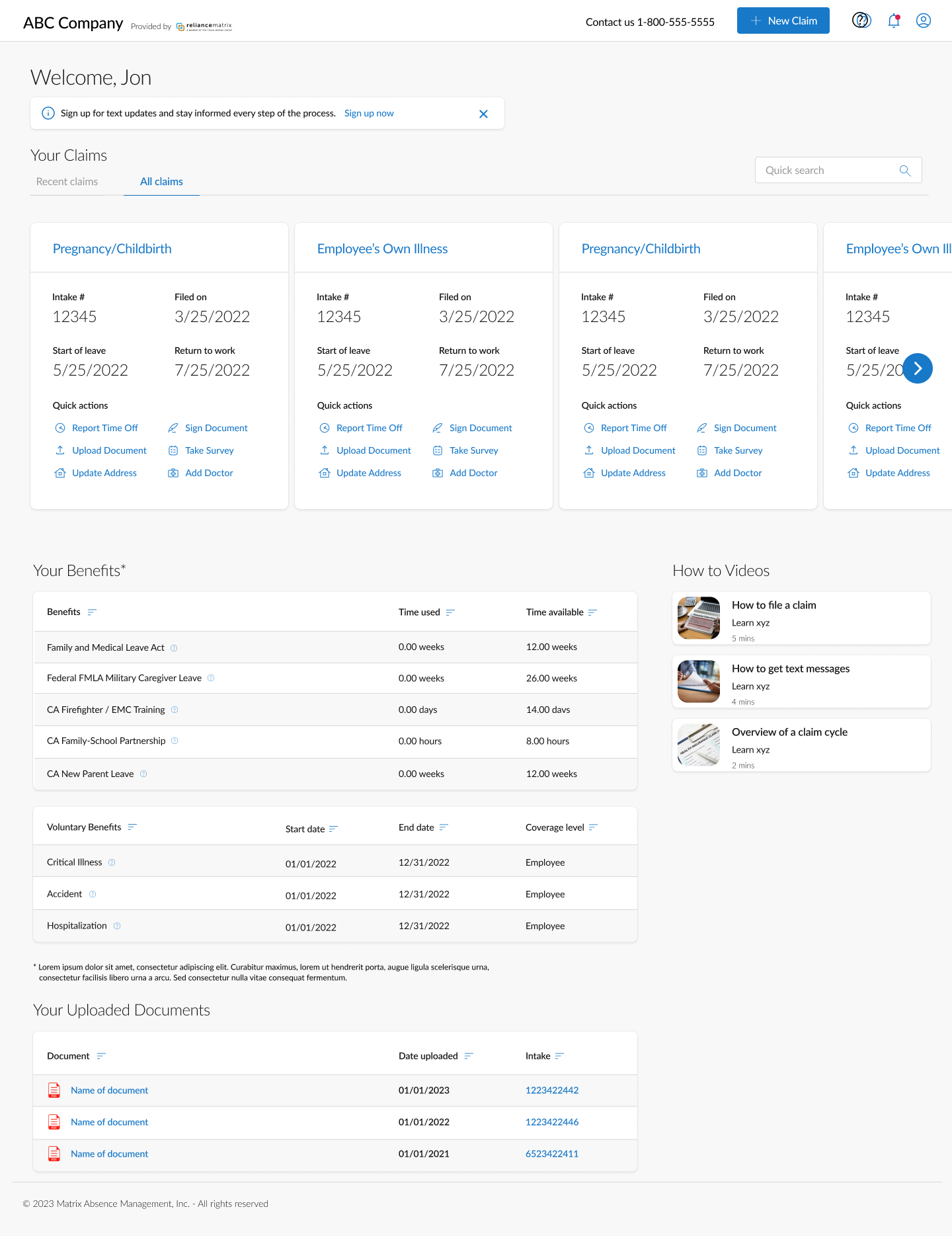 A unified claim status area consolidated critical data in one place, reducing reliance on HR for interpretation. Documentation workflows were streamlined so users could upload and manage required materials directly within the platform.