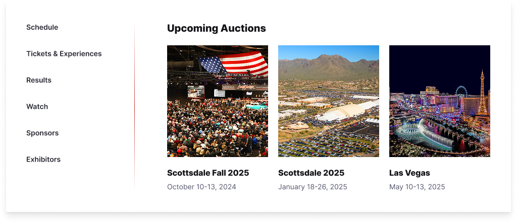 Information became easier to find, easier to understand, and easier to act on. Vehicles, auction details, and key dates were clearly surfaced, reducing friction for users who needed to make time-sensitive, high-confidence decisions. The site shifted from feeling dated and content-heavy to feeling intentional, premium, and aligned with the in-person auction experience.